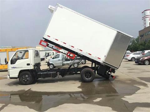 厢体自卸和举升系统:由液压缸,翻转支架组成,安装于病死猪运输车上主要用于:病死猪在收到厢体内运输到处理中心(处理站)后,通过液压自卸装置实现病死猪的自动倾卸,省时省力,安全快捷。