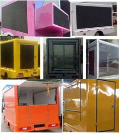 | 配置 | 车辆颜色可选,文字喷涂位置可变化;两侧可选装LED屏,侧展,滚轴灯箱,条屏,活动舞台;后部可选装LED条屏,灯箱,后展,通风口;前部可选装LED条屏;左右后可选装上翻遮阳板,下翻吧台,单开,双开门,或者封闭;选装顶帽造型和尾部踏板。 |
