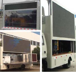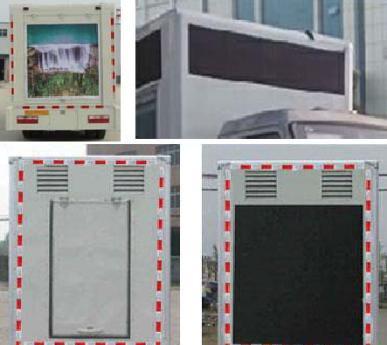 | 配置 | 该车是用于广告宣传和科普宣传的专用车辆,车辆颜色可选;文字喷涂位置可变化。两侧均可选装: LED升降或者不带升降屏, 滚轴灯箱,条屏, 活动舞台或者封闭; 后部可选装:通风口,后开门,或者灯箱或者LED屏;前部可选装通风口或LED屏升降或者不升降屏。左右亦可选装侧展或者封闭。ABS控制器型号及生产企业:CM4XL-4S/4M,广州科密汽车电子控制技术股份有限公司。 | ||