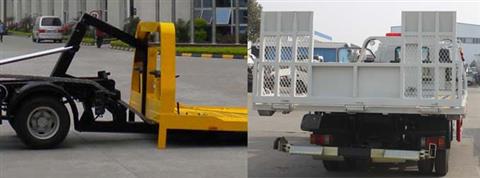 托举质量(kg):2825;选装摆臂平板和带后拦板,防护材料:Q235A碳钢,连接方式:左右侧面采用焊接接连接,后部防护由专用装置(后托架)代替,故后防护豁免。ABS系统控制器型号:CM4XL-4S/4K (4S/4M),ABS系统控制器生产厂家:广州市科密汽车制动技术开发有限公司;