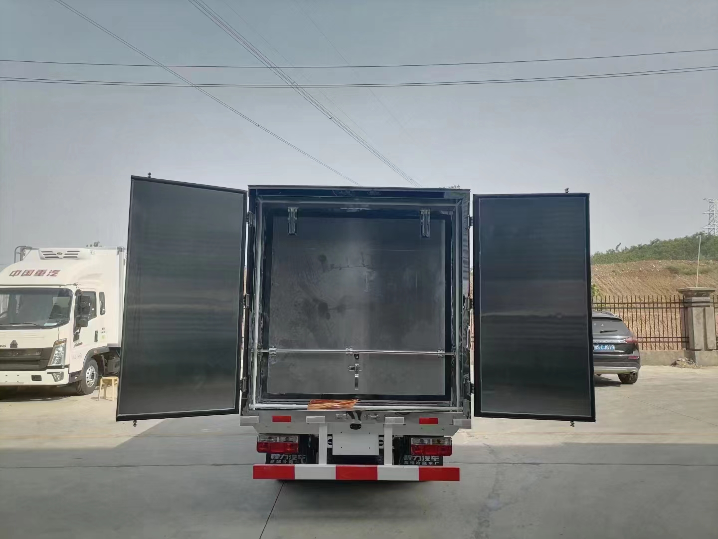 三、选装配置:可选装厢体侧门(单侧门或双开门),可选装铝合金导风槽(导风槽有助于冷气循环,提升制冷效果),可选装厢体顶部加固肉勾滑道(直滑道 或 对接互通式拐弯滑道)。可选装厢体内部采用全面不锈钢材质(海鲜运输必须加装,海水有腐蚀性),可选装280V-380V外接电源(停车熄火后可插电冷机继续制冷工作),可选装温湿度监控记录仪(带打印功能)。